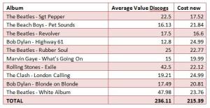 Table of Top Ten Records and their values