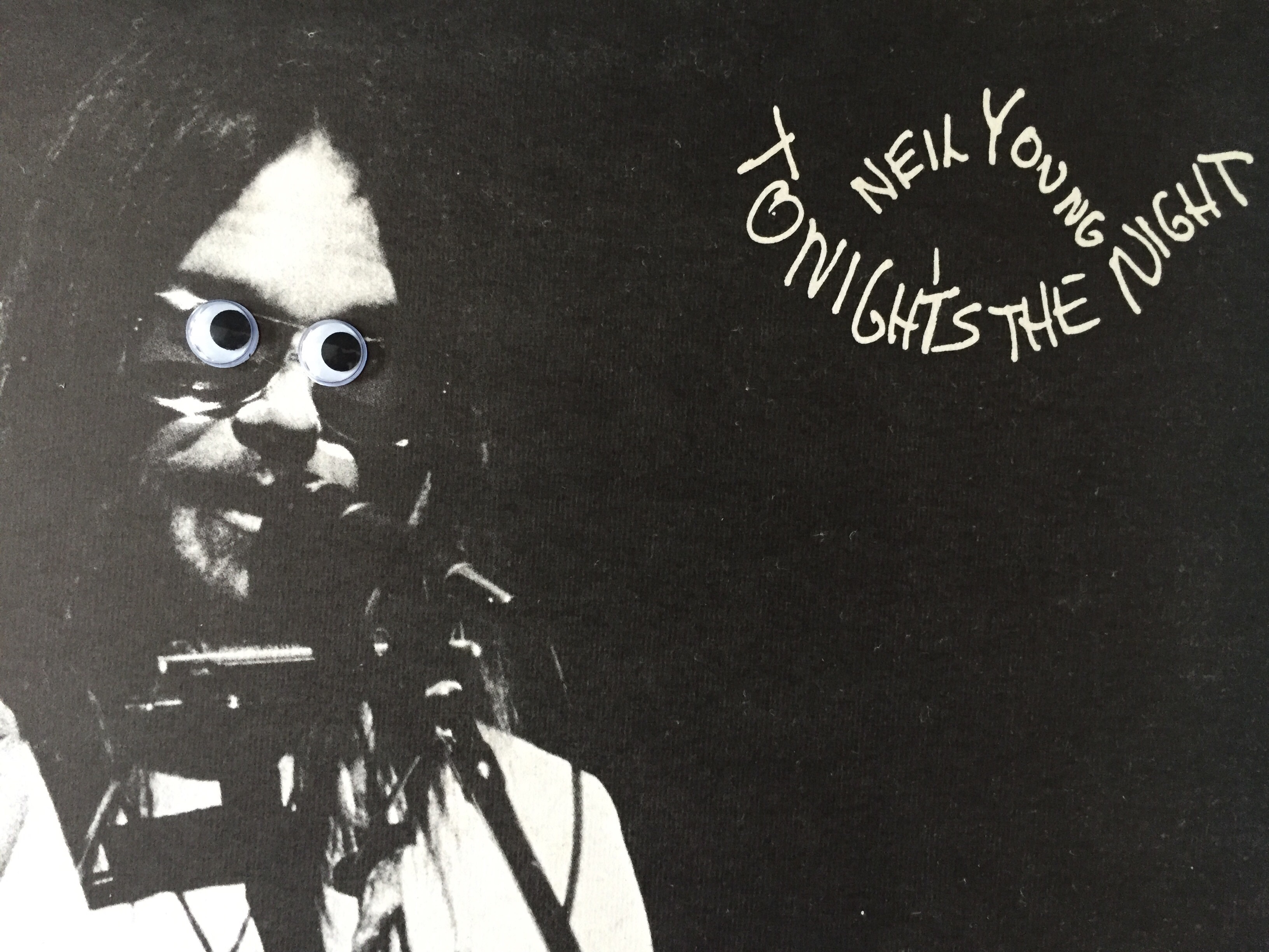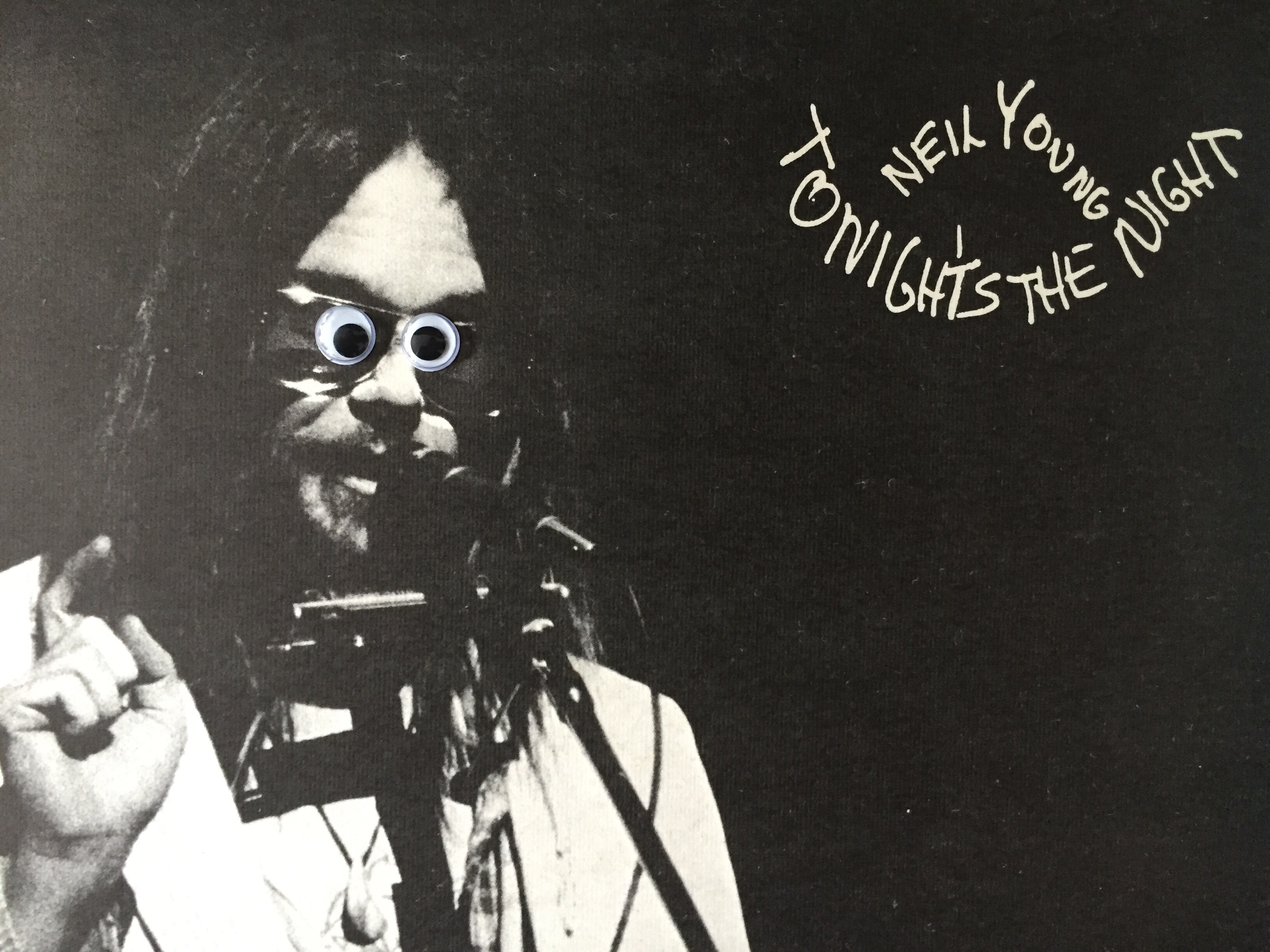 The photo on the cover of Tonight’s The Night is pretty bleak, but how much stranger would it look if Young’s eyes followed you around the room?